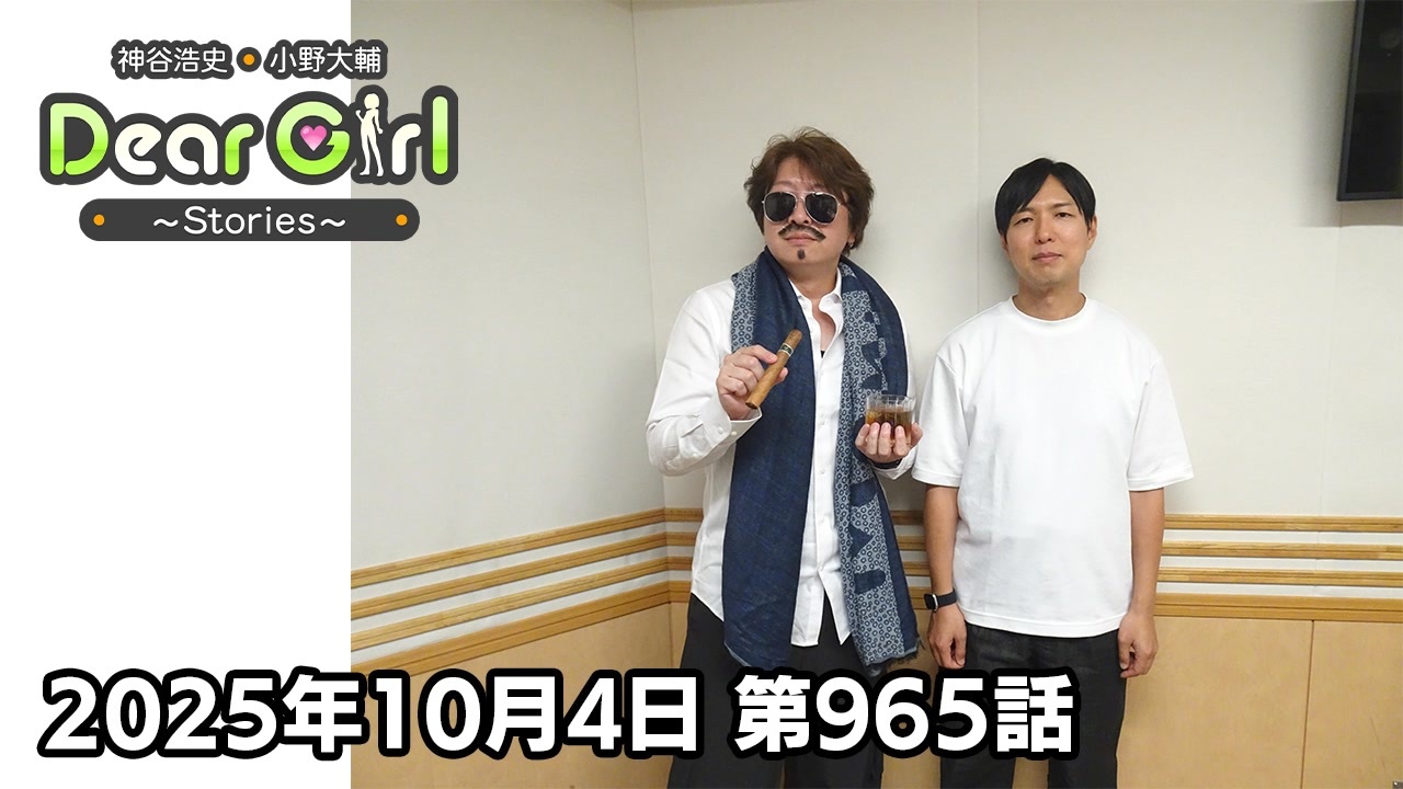 『神谷浩史・小野大輔のDear Girl〜Stories〜』<br>声優・神谷浩史、小野大輔がストーリーテラーとなってラジオの前のたった一人のアナタのために様々なストーリーをお届けするラジオプログラム。<br><br>こちらでは番組アーカイブを無料でお聴きいただけます。<br>今回は、2025年10月4日に文化放送で放送した第965話「2026年4月の改編も突破!(?)」をお届けします。是非、最後までお聴きください。<br><br>----------<br><br>主題歌CD第17弾「シアターパラディーゾ」好評発売中!<br>2025年4月よりオンエアのオープニングテーマ「シアターパラディーゾ」と新エンディングテーマ「フタリゴト」、オフボーカルバージョン、おまけトラックに「文化放送エクステンド社歌 2025」を収録!<br><br>▼ご購入はこちら!<br><a href="https://extendshop.jp/products/4582494262707" target="_blank" rel="noopener nofollow">https://extendshop.jp/products/4582494262707</a><br><br>----------<br><br>DGS発のエアバンド「MASOCHISTIC ONO BAND」(MOB)のデビュー10周年を記念したイベント「MASOCHISTIC ONO BAND 10th Anniversary Gasoline Meeting」イベントBlu-rayの発売!<br><br>▼ご購入はこちら!<br><a href="https://extendshop.jp/products/4582494262615" target="_blank" rel="noopener nofollow">https://extendshop.jp/products/4582494262615</a><br><br>----------<br><br><br>番組では皆さんからのお便りお待ちしています。<br><br>・放送日時<br>文化放送 毎週(土)25時〜25時30分<br>ラジオ大阪 毎週(日)23時〜23時30分<br>インターネットサイマルラジオradikoでも聴取可能です。<br><br>・公式Twitter<br><a href="https://twitter.com/uchi_P_" target="_blank" rel="noopener nofollow">https://twitter.com/uchi_P_</a><br><br>・番組メールアドレス<br>dgs@joqr.net<br><br>・番組公式サイト<br><a href="https://pc.animelo.jp/special/deargirl-stories/" target="_blank" rel="noopener nofollow">https://pc.animelo.jp/special/deargirl-stories/</a><br><br><br>