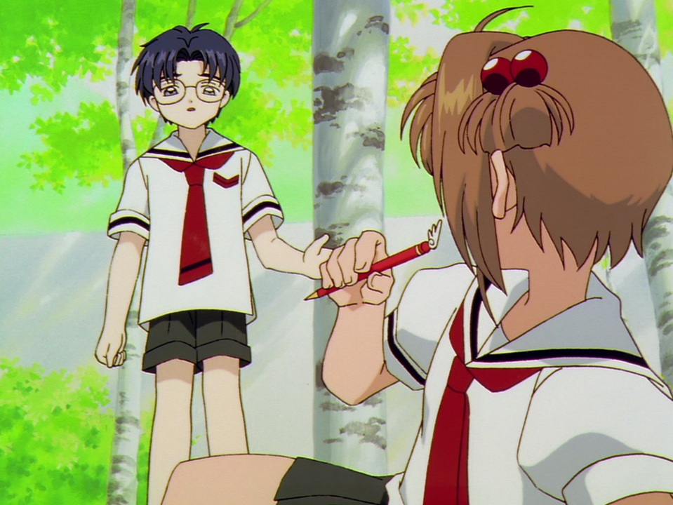 夏休みが終わり、さくらのクラスに転校生・エリオルがやってきた。仲よさそうなさくらとエリオルに小狼はおもしろくなさそう。家に帰ったさくらに語りかけるクロウ・リードの声、その時感じたいつもと違う気配、友枝町だけに降り続く雨…。何かあると感じたさくらは再びカードキャプターとして雨空の下へと出かける。<br><br>木之本 桜:丹下 桜/ケルベロス:久川 綾、小野坂 昌也/大道寺知世:岩男 潤子/李 小狼:くまい もとこ/月城雪兎、ユエ:緒方 恵美/木之本桃矢:関 智一/柊沢エリオル:佐々木 望/木之本 藤隆:田中 秀幸/李 苺鈴:野上 ゆかな/クロウ・リード:林 一夫/スピネル・サン:冬馬 由美、小西 克幸/秋月奈久留、ルビー・ムーン:柚木 涼香<br><br>原作:CLAMP/監督:浅香 守生/シリーズ構成:大川 七瀬(CLAMP)/キャラクターデザイン:高橋 久美子/コスチューム&カードデザイン:もこな(CLAMP)/美術監督:針生 勝文/音楽:根岸 貴幸/音響監督:三間 雅文/撮影監督:白井 久男/アニメーション制作:マッドハウス/アニメーションプロデューサー:小野 達矢/プロデューサー:近藤 栄三/制作統括:内沢 康子、渡辺 昭/オープニングテーマ:「プラチナ」作詞:岩里 祐穂、作曲・編曲:菅野 よう子、歌:坂本 真綾/エンディングテーマ:「FRUITS CANDY」作詞:横山 武、作曲:上田 晃司、編曲:保刈 久明、歌:こじまめぐみ<br><br>©CLAMP・ST・講談社/NHK・NEP<br><br>次話→<a href="https://www.nicovideo.jp/watch/so45490057" class="watch">so45490057</a>