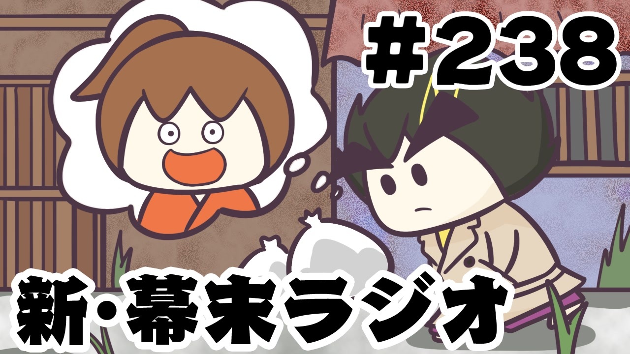 新・幕末ラジオ 2025年9月6日(土)放送分<br><br>1,あと10日で坂本の誕生日:<a href="#" class="seekTime" data-seekTime="0:01" onclick="seekNicoPlayer('#0:01'); return false;">#0:01</a><br>2,会員プレゼント:<a href="#" class="seekTime" data-seekTime="20:43" onclick="seekNicoPlayer('#20:43'); return false;">#20:43</a><br>3,放送次第:<a href="#" class="seekTime" data-seekTime="21:11" onclick="seekNicoPlayer('#21:11'); return false;">#21:11</a><br>4,坂本代わりにキレてくれ!:<a href="#" class="seekTime" data-seekTime="21:29" onclick="seekNicoPlayer('#21:29'); return false;">#21:29</a><br>5,坂本ベストスイーツ:<a href="#" class="seekTime" data-seekTime="48:20" onclick="seekNicoPlayer('#48:20'); return false;">#48:20</a><br>6,中岡の散歩:<a href="#" class="seekTime" data-seekTime="54:12" onclick="seekNicoPlayer('#54:12'); return false;">#54:12</a><br><br>←第237回 第239回→<br>(会員限定)新幕末ラジオマイリスト:<a href="https://www.nicovideo.jp/mylist/78814077" target="_blank" rel="noopener">mylist/78814077</a><br>(会員限定)旧幕末ラジオマイリスト:<a href="https://www.nicovideo.jp/mylist/55616469" target="_blank" rel="noopener">mylist/55616469</a><br><br>更新情報(Twitter) → <a href="https://twitter.com/kirizaki_ei" target="_blank" rel="noopener nofollow">https://twitter.com/kirizaki_ei</a><br>ゲーム実況まとめ : <a href="https://www.nicovideo.jp/mylist/8299531" target="_blank" rel="noopener">mylist/8299531</a><br>単発動画まとめ : <a href="https://www.nicovideo.jp/mylist/10539272" target="_blank" rel="noopener">mylist/10539272</a><br>生放送まとめ : <a href="https://www.nicovideo.jp/mylist/53482635" target="_blank" rel="noopener">mylist/53482635</a><br>幕末志士チャンネル : <a href="https://ch.nicovideo.jp/bakumatsu" target="_blank" rel="noopener">ch.nicovideo.jp/bakumatsu</a><br>