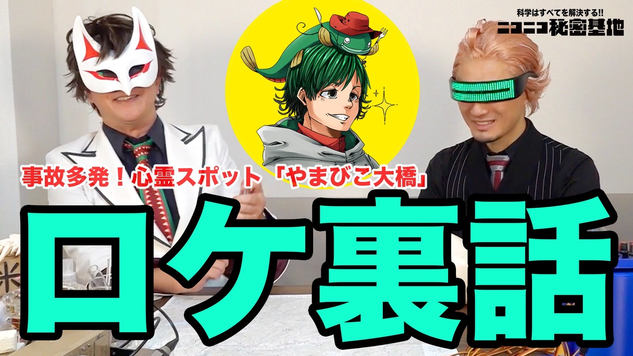 心霊スポットを科学で解明せよ!<br>先日いわくつき(?)の事故多発エリア「やまびこ大橋」を、怪人軍団&ホモサピで検証したぞ。<br>今夜はその動画の裏話をお届けだ!<br><br>⬇︎今回話している元動画はコチラ!(YouTube)⬇︎<br>事故多発の心霊スポットを科学者が検証【やまびこ大橋】<br><a href="https://youtu.be/BKYd9kkCEhg" target="_blank" rel="noopener nofollow">https://youtu.be/BKYd9kkCEhg</a><br>---------------------------------------------<br>「科学はすべてを解決する!! ニコニコ秘密基地」にご入会いただきますと<br>チャンネル会員向けの動画や生放送、ブロマガなどをお楽しみただけます。<br>↓詳細はこちら↓<br><a href="https://ch.nicovideo.jp/kagaku-kaiketu" target="_blank" rel="noopener nofollow">https://ch.nicovideo.jp/kagaku-kaiketu</a>