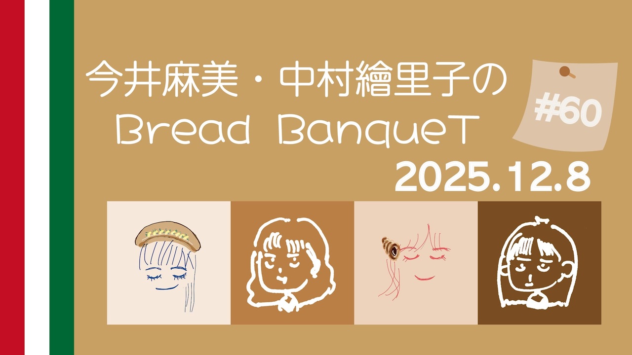 この番組は、声優今井麻美(ミンゴス)、中村繪里子によるラジオ番組です。(アーカイブ配信)<br>本放送はニコニコ動画にて、軽快に繰り広げられる無限に続くトークを、パンの日(8.18.28)にお届けします。<br>毎月 8日 18日 28日の夜10時から!<br><br>2024年8月28日よりにニコニコ動画、YouTubeにてサイマル配信されています。<br><br><12月の配信予定><br>#60:12月8日配信<br>#61:12月18日配信<br>#62:12月31日配信<br><br>《チャンネルメンバーシップ概要》<br>www.youtube.com/@BreadBanqueT/join<br>チャンネルページの「メンバーになる」ボタンをクリックすると、詳細情報が表示されます。<br><br><主なチャンネルメンバーシップ特典><br>・メンバー限定の動画コンテンツ「Speciality」の視聴<br>・メンバー限定ブロマガの閲覧<br>・コメントやチャットで使用できるカスタム絵文字やバッジ<br><br>【この番組では各コーナー宛にお便りを募集しています】<br>・「〇〇をただ駄弁るダケ〜略して だ駄ダ〜」 <br>〇〇の部分をおくって、えりんごすのお喋りを助けよう‼<br><br>・お試し企画「〇〇のコト FOR えりんごす」<br>現在、各地の空港に関する情報をお待ちしています‼️<br><br> ・その他 ふつおたも受け付けています<br><br>メールの宛先は 〈bbt.eringosu@gmail.com〉<br>各コーナータイトルをメールの題名に書いて送ってくださいね<br>番組特製ノベルティが欲しい方は<br>・本名<br>・住所<br>・電話番号<br>もお忘れなく<br><br>///// 今井麻美・中村繪里子のBread BanqueT【公式通販サイト】/////<br><a href="https://bread-banquet.square.site/" target="_blank" rel="noopener nofollow">https://bread-banquet.square.site/</a><br><br>///// 今井麻美・中村繪里子のBread BanqueT【ニコニコ動画】/////<br><a href="https://ch.nicovideo.jp/bbt-eringosu" target="_blank" rel="noopener nofollow">https://ch.nicovideo.jp/bbt-eringosu</a><br><br><br>#ぶればん <br>#今井麻美<br>#中村繪里子<br>#えりんごす<br>