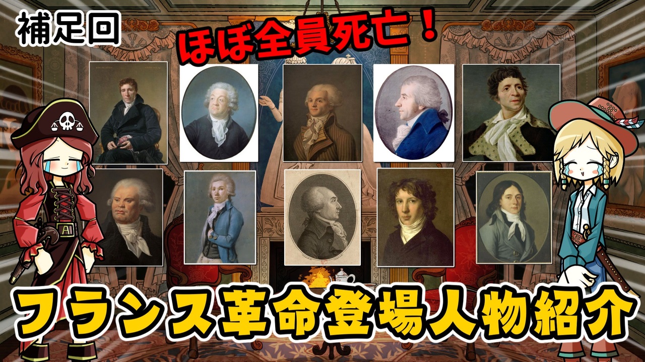 フランス革命の補足回。<br>なんかいろんな人が出てやたらと処されるけど、それぞれどういう考えをもってて、なんで処刑されたのか。<br>そういう超大雑把なまとめです。いちおうこれを把握しておくとフランス革命をもっと楽しめるかもしれない。<br><br>━━━━━━━━━━━━━━━━━━━━━<br>投稿者共通情報☆彡<br><br>BGM, SE:ニコニ・コモンズ様<br><a href="http://commons.nicovideo.jp/" target="_blank" rel="noopener nofollow">http://commons.nicovideo.jp/</a><br>魔王魂様<br><a href="https://maoudamashii.jokersounds.com/" target="_blank" rel="noopener nofollow">https://maoudamashii.jokersounds.com/</a><br>Audiostock様<br><a href="https://audiostock.jp/" target="_blank" rel="noopener nofollow">https://audiostock.jp/</a><br><br>立ち絵 霊夢・魔理沙(黒子式):nicotalk様<br><a href="http://www.nicotalk.com/charasozai.html" target="_blank" rel="noopener nofollow">http://www.nicotalk.com/charasozai.html</a><br><br>立ち絵 パトラ、マリー、アン、メアリ:ライフライフ様<br><a href="https://0801lifelife.tumblr.com/" target="_blank" rel="noopener nofollow">https://0801lifelife.tumblr.com/</a><br><br>使用ツール1:ゆっくりムービーメーカー4<br><a href="https://manjubox.net/ymm4/" target="_blank" rel="noopener nofollow">https://manjubox.net/ymm4/</a><br><br>使用ツール2:AviUtl<br><a href="http://spring-fragrance.mints.ne.jp/aviutl/" target="_blank" rel="noopener nofollow">http://spring-fragrance.mints.ne.jp/aviutl/</a><br><br>各時代の地図 : World History Maps & Timelines <br><a href="http://geacron.com/home-en/" target="_blank" rel="noopener nofollow">http://geacron.com/home-en/</a><br><br>ゆっくりボイスについて:AquesTalkライセンス取得済み<br><br>キャラクターボイス<br>アン・ボニー:羽ノ華(A.I.VOICE)<br>メアリ・リード:琴葉 葵(A.I.VOICE)<br>クレオパトラ:結月ゆかり(VOICEROID2)<br>マリー‐アントワネット:東北きりたん (VOICEROID EX)<br><br>他:<br>青山龍星 (A.I. VOICE )<br>伊織結弦 (A.I.VOICE2 )<br>宮舞モカ、フリモメン (VOICEPEAK )<br><br><br>その他フリー素材ご提供元の皆様に圧倒的感謝<br><br>この動画はクリエイティブ・コモンズ継承(CC-BY-SA)ライセンスの素材を使用して制作しています。(<a href="https://creativecommons.org/licenses/by-sa/4.0/)" target="_blank" rel="noopener nofollow">https://creativecommons.org/licenses/by-sa/4.0/)</a><br>規約に基づき、この動画もCC-BY-SA 4.0 のもとで公開します。<br><br><br>