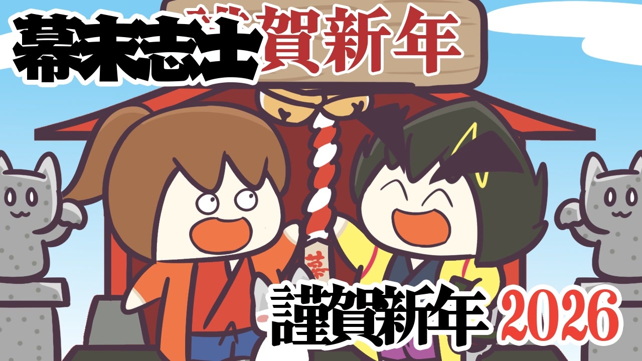 謹賀新年幕末志士2026<br> 2026年1月3日(土)放送分<br><br>1,あけましておめでとうございます:<a href="#" class="seekTime" data-seekTime="0:01" onclick="seekNicoPlayer('#0:01'); return false;">#0:01</a><br>2,放送次第:<a href="#" class="seekTime" data-seekTime="11:13" onclick="seekNicoPlayer('#11:13'); return false;">#11:13</a><br>3,今年の抱負:<a href="#" class="seekTime" data-seekTime="11:17" onclick="seekNicoPlayer('#11:17'); return false;">#11:17</a><br>4,幕末志士の正月:<a href="#" class="seekTime" data-seekTime="33:12" onclick="seekNicoPlayer('#33:12'); return false;">#33:12</a><br>5,中岡コーナー「中岡と世界の厄払い」:<a href="#" class="seekTime" data-seekTime="66:54" onclick="seekNicoPlayer('#66:54'); return false;">#66:54</a><br><br>←ゆく年くる年 新坂ラジ第2回→<br>(会員限定)新幕末ラジオマイリスト:<a href="https://www.nicovideo.jp/mylist/78814077" target="_blank" rel="noopener">mylist/78814077</a><br>(会員限定)旧幕末ラジオマイリスト:<a href="https://www.nicovideo.jp/mylist/55616469" target="_blank" rel="noopener">mylist/55616469</a><br><br>更新情報(Twitter) → <a href="https://twitter.com/kirizaki_ei" target="_blank" rel="noopener nofollow">https://twitter.com/kirizaki_ei</a><br>ゲーム実況まとめ : <a href="https://www.nicovideo.jp/mylist/8299531" target="_blank" rel="noopener">mylist/8299531</a><br>単発動画まとめ : <a href="https://www.nicovideo.jp/mylist/10539272" target="_blank" rel="noopener">mylist/10539272</a><br>生放送まとめ : <a href="https://www.nicovideo.jp/mylist/53482635" target="_blank" rel="noopener">mylist/53482635</a><br>幕末志士チャンネル : <a href="https://ch.nicovideo.jp/bakumatsu" target="_blank" rel="noopener">ch.nicovideo.jp/bakumatsu</a><br>