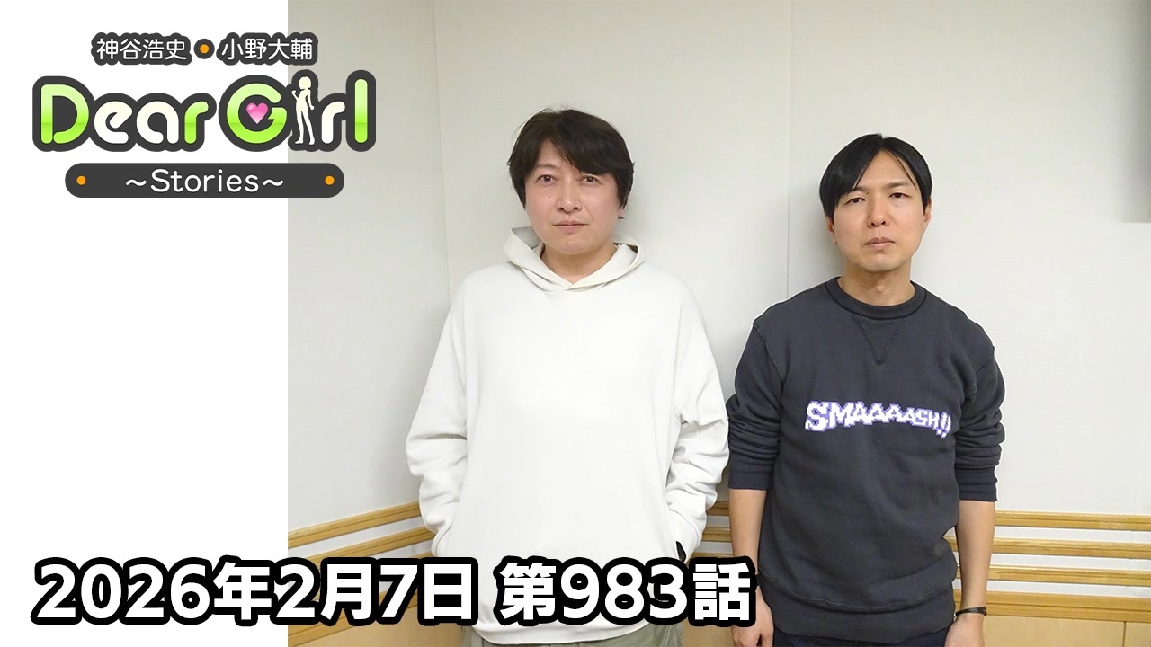 『神谷浩史・小野大輔のDear Girl〜Stories〜』<br>声優・神谷浩史、小野大輔がストーリーテラーとなってラジオの前のたった一人のアナタのために様々なストーリーをお届けするラジオプログラム。<br><br>こちらでは番組アーカイブを無料でお聴きいただけます。<br>今回は、2026年2月7日に文化放送で放送した第983話 「これ浜松土産、真夜中のお菓子です」をお届けします。是非、最後までお聴きください。<br><br>----------<br><br>主題歌CD第17弾「シアターパラディーゾ」好評発売中!<br>2025年4月よりオンエアのオープニングテーマ「シアターパラディーゾ」と新エンディングテーマ「フタリゴト」、オフボーカルバージョン、おまけトラックに「文化放送エクステンド社歌 2025」を収録!<br><br>▼ご購入はこちら!<br><a href="https://extendshop.jp/products/4582494262707" target="_blank" rel="noopener nofollow">https://extendshop.jp/products/4582494262707</a><br><br>----------<br><br>DGS発のエアバンド「MASOCHISTIC ONO BAND」(MOB)のデビュー10周年を記念したイベント「MASOCHISTIC ONO BAND 10th Anniversary Gasoline Meeting」イベントBlu-rayの発売!<br><br>▼ご購入はこちら!<br><a href="https://extendshop.jp/products/4582494262615" target="_blank" rel="noopener nofollow">https://extendshop.jp/products/4582494262615</a><br><br>----------<br><br><br>番組では皆さんからのお便りお待ちしています。<br><br>・放送日時<br>文化放送 毎週(土)25時〜25時30分<br>ラジオ大阪 毎週(日)23時〜23時30分<br>インターネットサイマルラジオradikoでも聴取可能です。<br><br>・公式Twitter<br><a href="https://twitter.com/uchi_P_" target="_blank" rel="noopener nofollow">https://twitter.com/uchi_P_</a><br><br>・番組メールアドレス<br>dgs@joqr.net<br><br>・番組公式サイト<br><a href="https://pc.animelo.jp/special/deargirl-stories/" target="_blank" rel="noopener nofollow">https://pc.animelo.jp/special/deargirl-stories/</a><br><br><br>