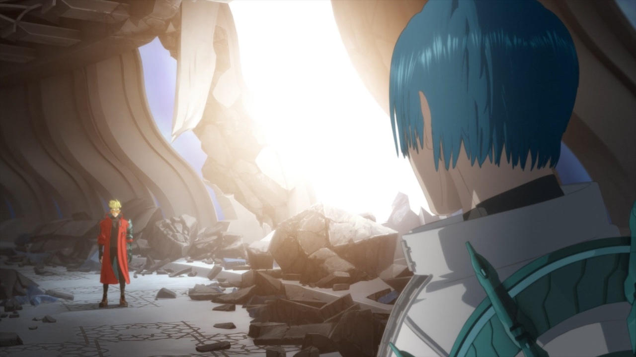 降り注ぐミサイルの雨により、方舟によるホームへの本格的な襲撃が狼煙を上げる。ホームを隠し守っていた砂嵐のシールドも、かつて移民船団の研究機関に所属していたコンラッドにより破られ、レガート・ブルーサマーズたちの侵入を許してしまう。ロストテクノロジーによって強化されたレガートの猛攻に苦戦を強いられるヴァッシュ。そしてついに、“復活の時”が訪れる。<br><br>ヴァッシュ・ザ・スタンピード:松岡禎丞/メリル・ストライフ:あんどうさくら/ニコラス・D・ウルフウッド:細谷佳正/ミリィ・トンプソン:綾森千夏/レガート・ブルーサマーズ:内山昂輝/エレンディラ・ザ・クリムゾンネイル:村瀬 歩/ウィリアム・コンラッド:中尾隆聖/ザジ・ザ・ビースト:TARAKO/高山みなみ/ミリオンズ・ナイヴズ:佐藤流司<br><br>原作:内藤泰弘(少年画報社 ヤングキングコミックス刊)/監督:佐藤雅子/シリーズ構成・脚本:筆安一幸/ストーリー原案:オキシタケヒコ/コンセプトアート・キャラクター原案:田島光二/ キャラクターデザイン:押山清高/メカニカルデザイン:柳瀬敬之、片貝文洋/ プロップデザイン:長谷川竹光/CG チーフディレクター:井野元英二/ テクニカルディレクター:都田崇之/モデリングスーパーバイザー:長川準/ フェイシャルディレクター:國島かおり/ VFXアートディレクター:早川大嗣/色彩設計:橋本賢/美術監督:中島理/編集:今井大介/サウンドエディター:勝俣まさとし/音楽:加藤達也/制作:オレンジ<br><br>© 2026 内藤泰弘・少年画報社/「TRIGUN STARGAZE」製作委員会<br><br><a href="https://www.nicovideo.jp/watch/so45915158" class="watch">so45915158</a>←前話 第一話→<a href="https://www.nicovideo.jp/watch/so45817245" class="watch">so45817245</a>