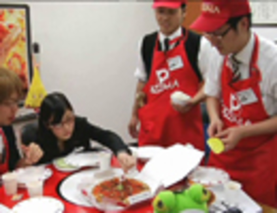ドルアーガピザ生放送でも評判の良かった<font color="orange2"><b>イクラ丼ピザ</b></font>を作ってみた、のニコニコラボピザ Part.5 です。<br />メガネ氏からは<font color="red">「粉もんにごはんはサイコーでしょ」</font>、山下助手からも「おいしいですよ」のお言葉をいただき、やっぱり大好評。<br />とはいえ、①やっぱり、イクラは高い ②いそがしい時間に<font size="+1" color="red">「あ~、イクラのせなきゃ、あ~、イクラのせなきゃ。」</font>という奇妙な動きをしてしまう<br />③なまものをアツアツのピザにのせてのお届けはこわい 、といった理由で、<font size="+1">イクラ入りはオクラ入り</font>...orz<br />それでは、引き続き、皆さまのアイデアをお待ちしております。宜しくお願い致します。<br /><br />★お出かけ企画の動画はこちら → <b>【<a href="https://www.nicovideo.jp/watch/1240949133" class="watch">watch/1240949133</a>】</b><br />★おすすめのピザといえば「クラブハウスピザ」 → <b>【<a href="https://www.nicovideo.jp/watch/1237816367" class="watch">watch/1237816367</a>】</b><br />★宅配ピザのピザーラのホームページはこちら <a href="http://www.pizza-la.co.jp/"><b>http://www.pizza-la.co.jp/</b></a>